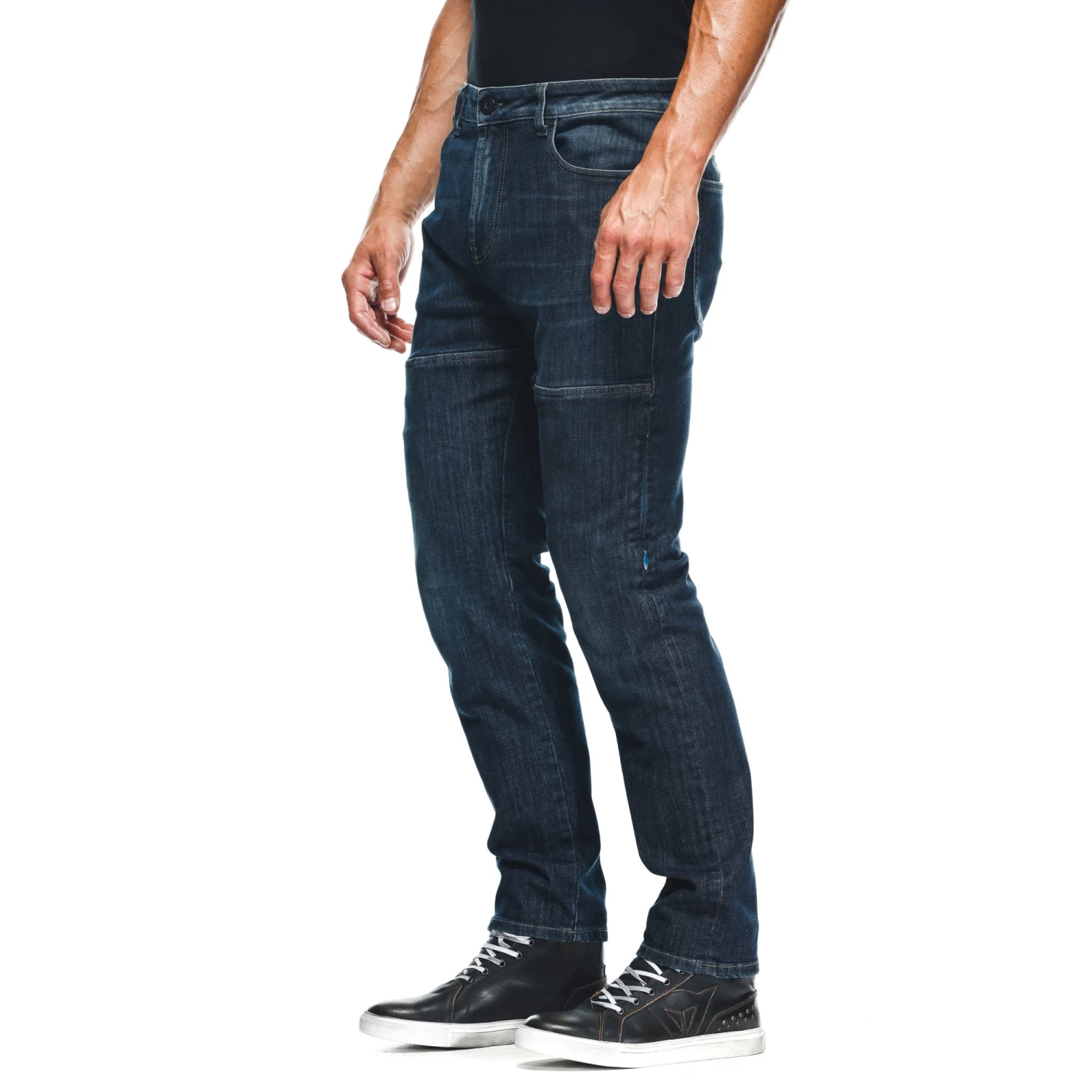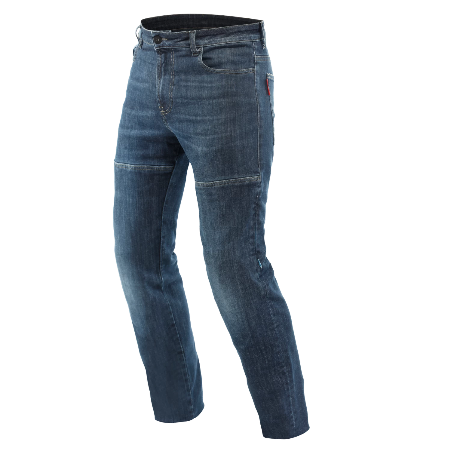 The Dainese Denim Blast motorcycle jeans in stretch fabric are designed to provide protection and an ergonomic fit, through their regular cut and soft Pro-Shape 2.0 protectors with EN 1621.1 certification on the knees. The height of the protectors can be adjusted, and they can be removed if desired using the external zipper.