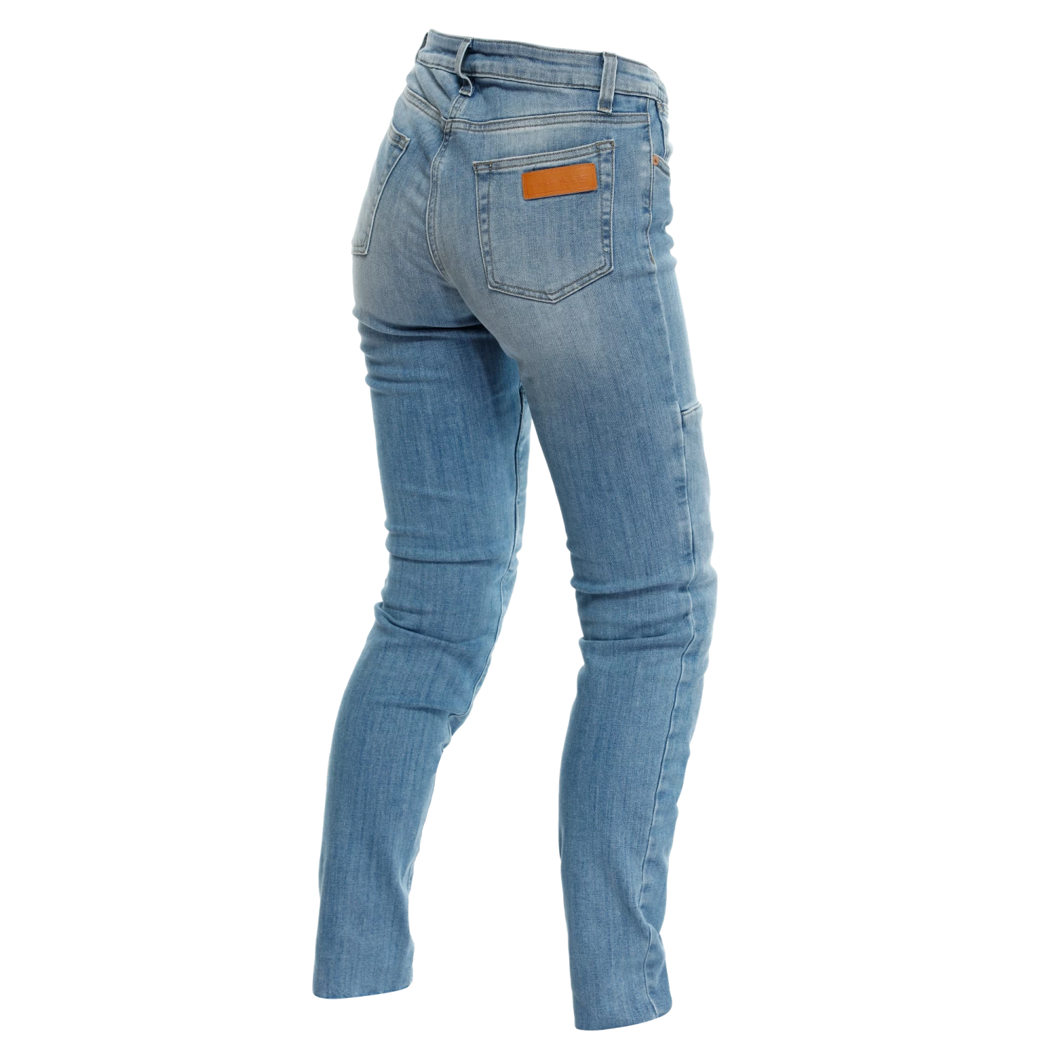 The Dainese women’s Denim Stone motorcycle jeans are made of stretch fabric and are designed to have a slim fit on the female body. They guarantee protection through the soft Pro-Shape 2.0 protectors with EN 1621.1 certification on the knees, which are adjustable in height and removable, and soft Pro-Shape 2.0 protectors can be inserted on the hips.