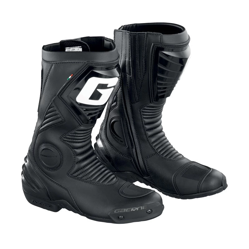G-evolution five are the racing boots for sporty riding! The upper is made in microfibre and the front and rear hinges in elasticized material to ensure excellent fit and comfort. The inside is fully lined with an antibacterial and breathable membrane. The heel cup, front plate and gear support complement the technical features of these new boots. Inner side zippers and elastic velcro enhance the fit. Other features include an exclusive dual compound and anti-slip rubber sole, replaceable sliders, and an anatomically correct removable insole.