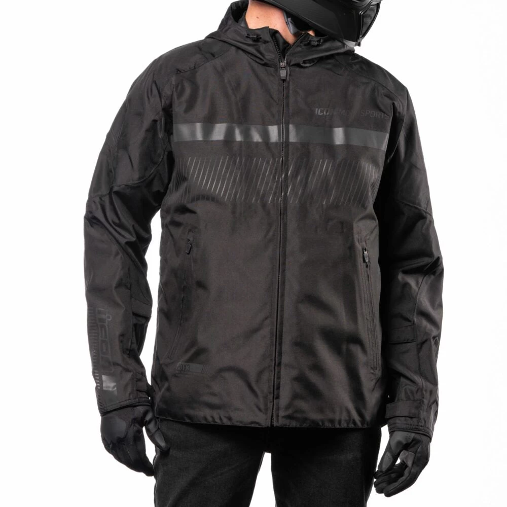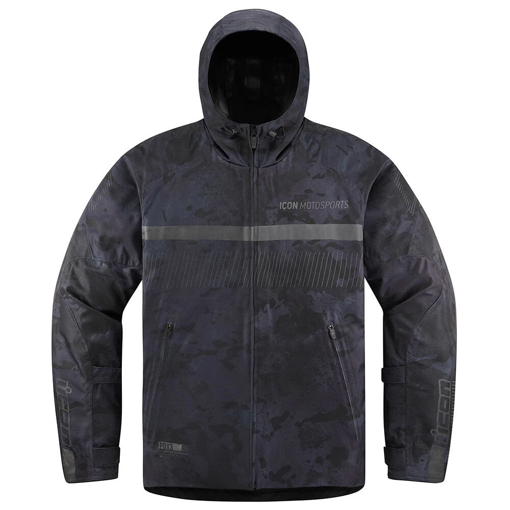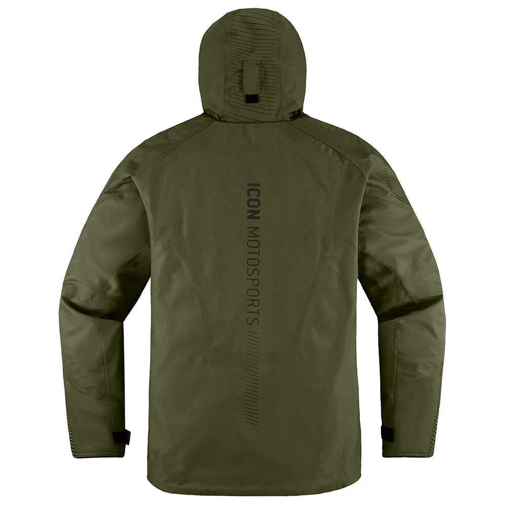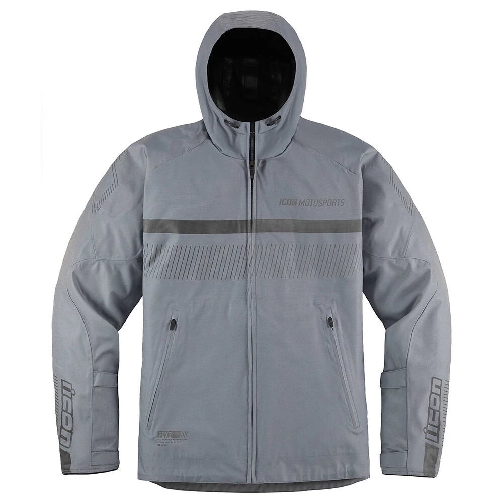 Raised on the rain-soaked streets of Portland, the ICON design team knows a few things about wet weather riding. The CE-certified PDX3, named after our home city, combines the necessity of a fully-taped waterproof/breathable shell with premium D3O impact protectors in the elbows, shoulders, and back. In addition, the pit zips provide additional venting ability while the hood rolls up for riding.
