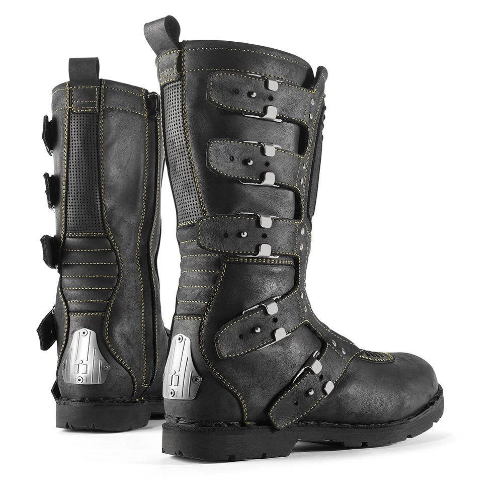 The Elsinore’s five-strap, alloy-buckle chassis, stamped metal heel plate, and internal steel shank combine for a serious dose of moto-x homage. The traditional Goodyear welt construction mates the ICON street-specific sole to the magnificent leather upper. A medial entry zipper, allocated from Paratrooper jump boots, is the only luxury the Elsinore will allow itself. A modern relic from an era when men were iron and tanks were steel. The Elsinore, old-school MX reinterpreted for the urban sprawl.